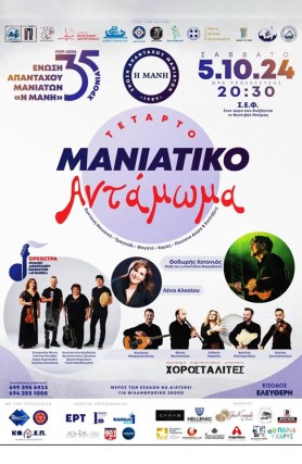 Οι Χοροσταλίτες συμμετέχουν μουσικά στο τέταρτο Μανιάτικο αντάμωμα στο στάδιο Ειρήνης και Φιλίας 5 Οκτωβρίου 2024 σε ένα παραδοσιακό γλέντι από όλη την Ελλάδα.