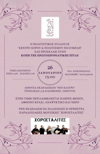 Οι Χοροσταλίτες σε ένα παραδοσιακό γλέντι στην κοπή πίτας του Κέντρου Πολιτισμού και Χορού "ΠΟΛΥΜΙΛΗ" την Κυριακή το μεσημέρι 26 Ιανουαρίου 2025 στο "Νέο Κάστρο".