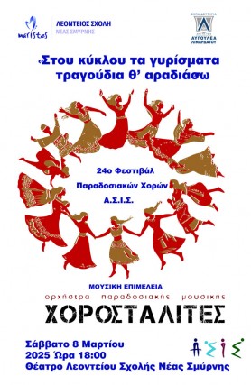 Οι Χοροσταλίτες για 9η συνεχόμενη χρονιά έχουν την μουσική επιμέλεια του Φεστιβάλ Παραδοσιακών Ιδιωτικών σχολείων Αθήνας ΑΣΙΣ στο θέατρο Λεοντείου Νέας Σμύρνης στις 8/3/2025.