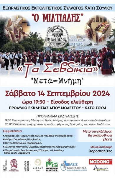 Οι Χοροσταλίτες συνοδεύουν μουσικά την εκδήλωση "Σεβδίκια" του πολιτιστικού συλλόγου Μιλτιάδη το Σάββατο 14, Σεπτεμβρίου 2024 στο Κάτω Σούλι Μαραθώνα.