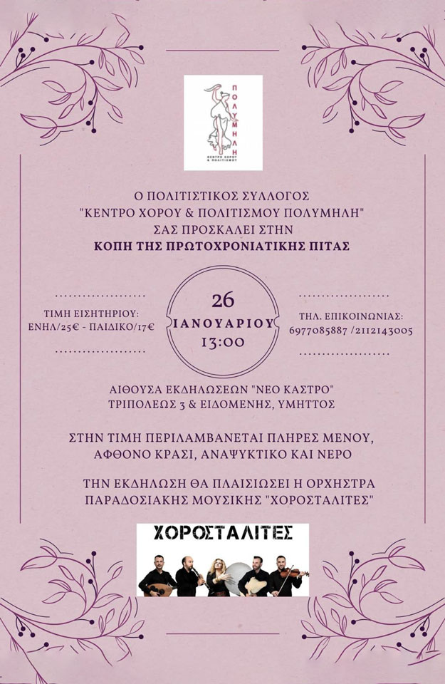 Οι Χοροσταλίτες σε ένα παραδοσιακό γλέντι στην κοπή πίτας του Κέντρου Πολιτισμού και Χορού "ΠΟΛΥΜΙΛΗ" την Κυριακή το μεσημέρι 26 Ιανουαρίου 2025 στο "Νέο Κάστρο".